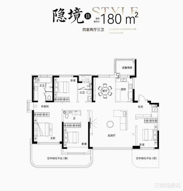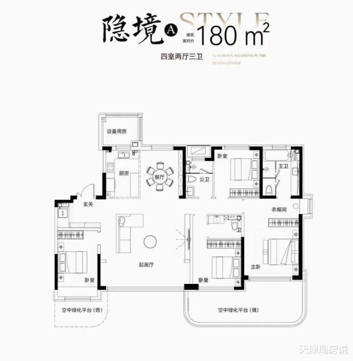 另外,180平米四室,还升级为三卫设计,做出了双套间设计。