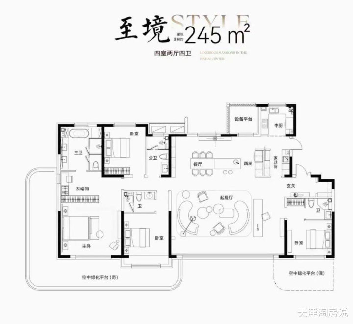 继建投滨海雲阙之后,这是第二个有三面大露台的项目。