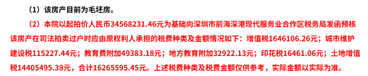 但这些税费皆由原权利人宝能“埋单”,受买人仅需要支付物业违约金。法拍不是游戏场,即便法院不予追究补差价,几百万的保证金也会打水漂。举牌前请默念三遍:“我的钱不是大风刮来的!”